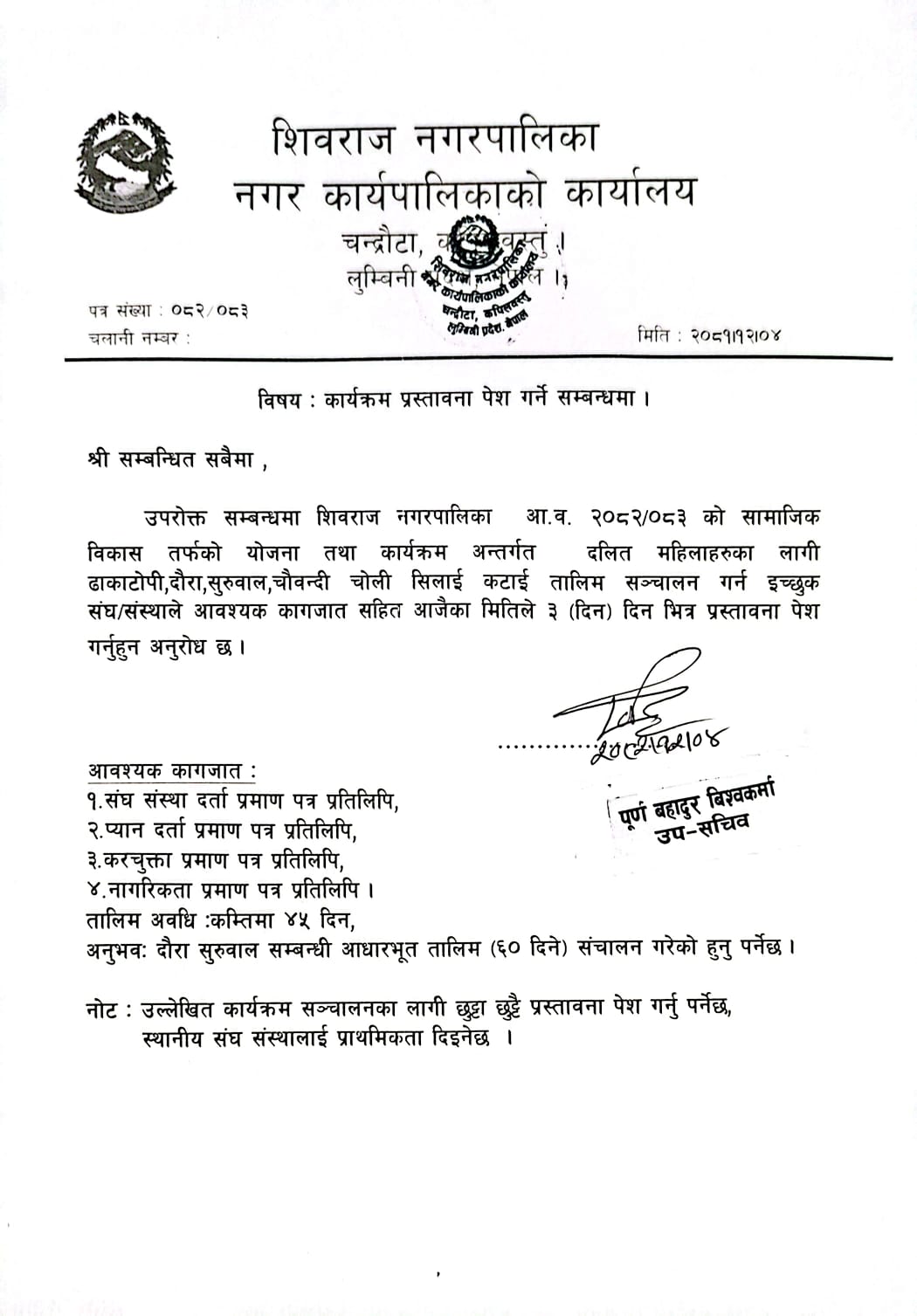 आ. व. २०८३/०८४ का लागि न्यूनतम रोजगारीमा संलग्न हुन निवेदन दिने सम्बन्धी सूचना।