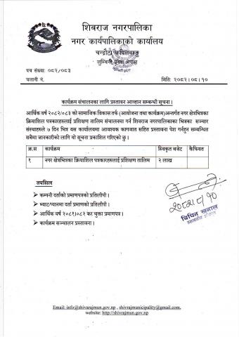 कार्यक्रम सञ्चालनका लागि प्रस्ताव आहवान सम्बन्धमा।