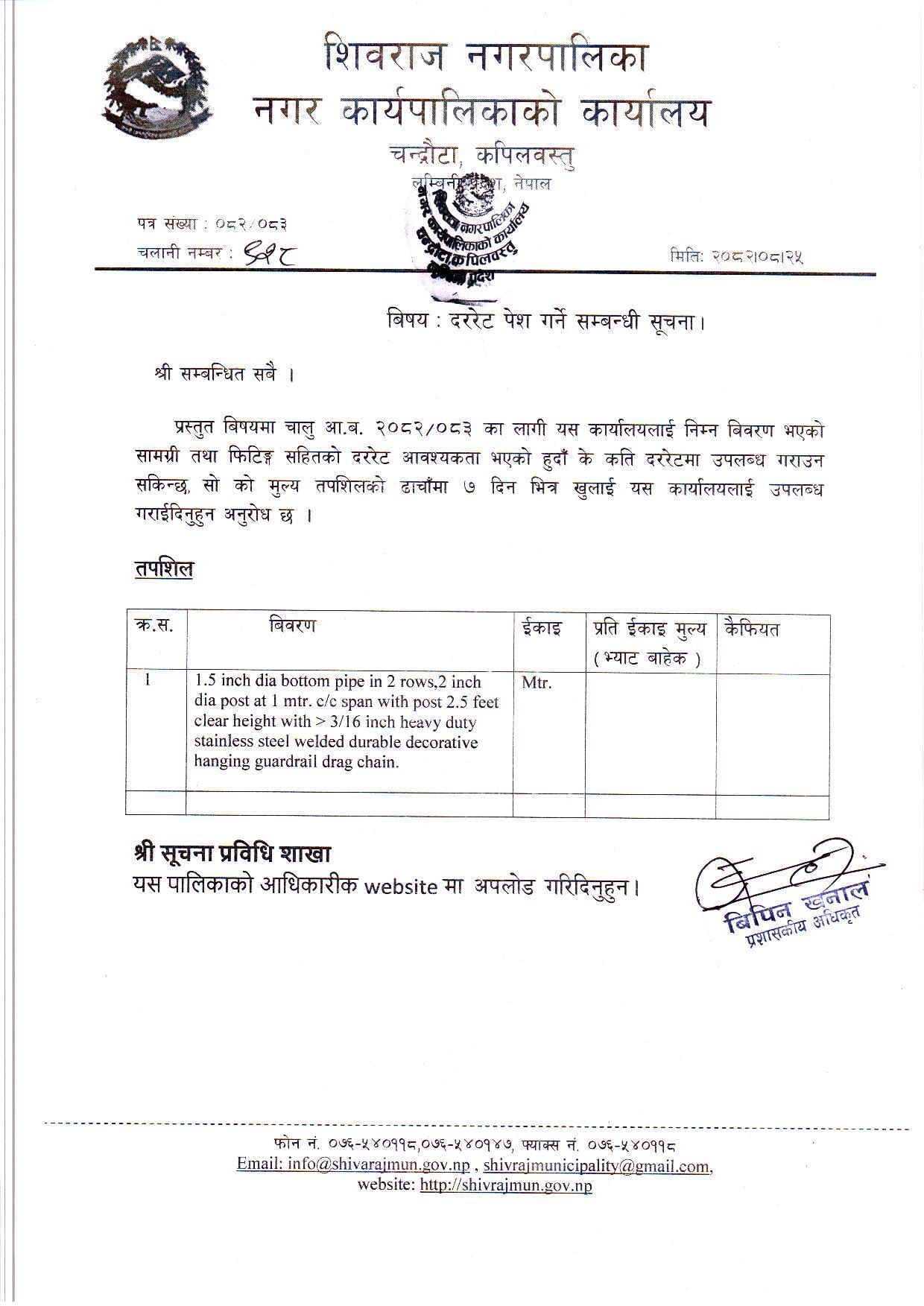 अाय ठेक्काकाे शिलवन्दी दरभाउ पत्र अाव्हानकाे सूचना !!!