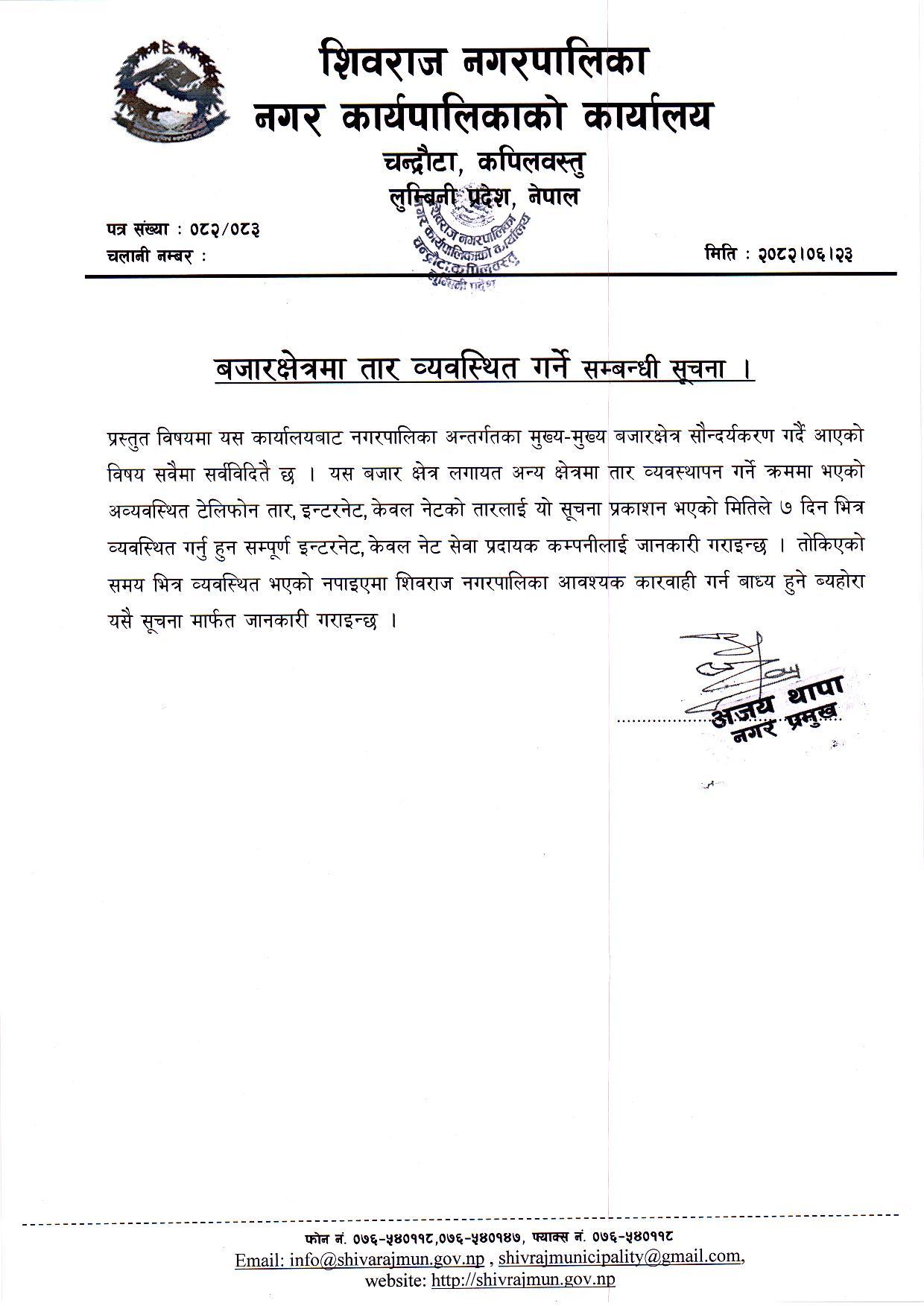 » बजारक्षेत्रमा तार व्यवस्थित गर्ने सम्बन्धी सूचना।