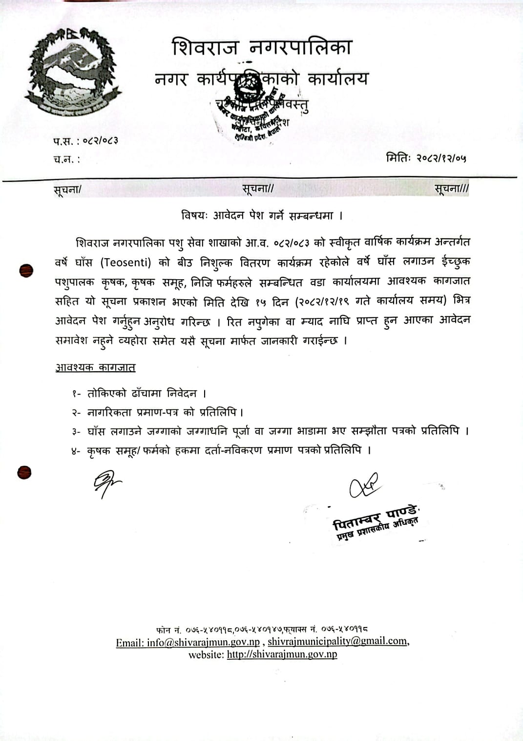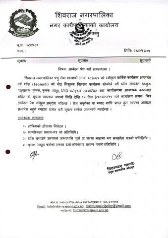 शिवराज नगरपालिका कृषि विकास शाखाकाे सूचना ! सूचना !! सूचना !!!