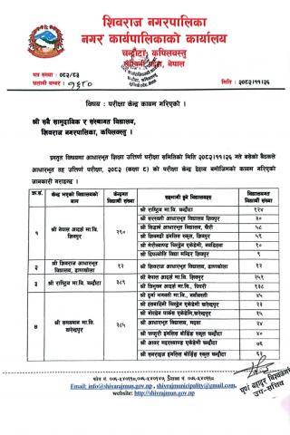 परिक्षा केन्द्र कायम गरिएको।