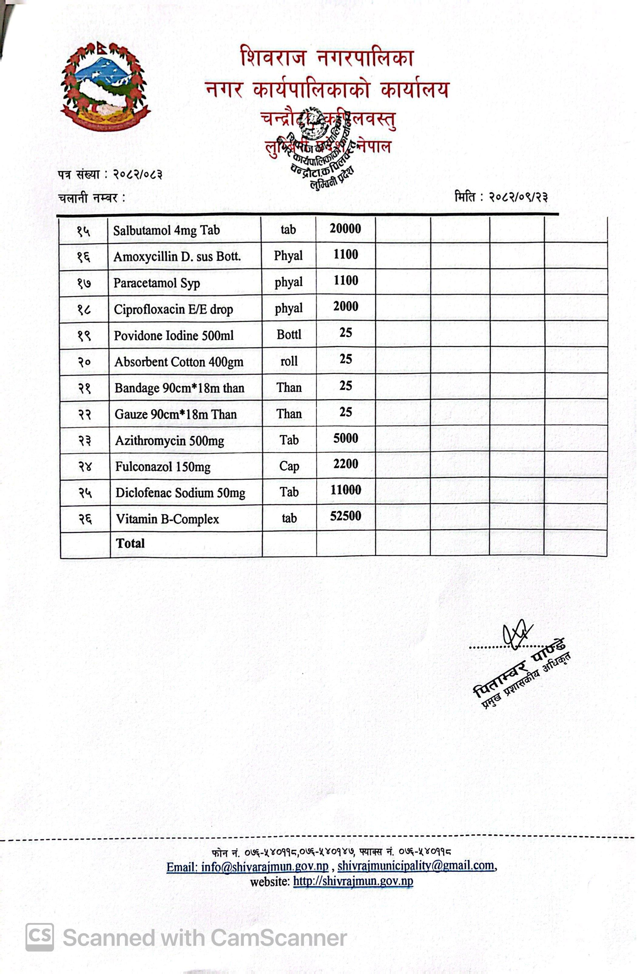 शिवराज न पा काे चालु खर्चकाे फाटवारी