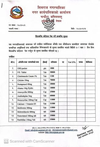 चन्द्रौटा बजार सरसफाई गर्ने कार्य तथा सरसफाई शुल्क संकलन सम्बन्धि शिलवन्दी दरभाउ सम्बन्धि सूचना ।