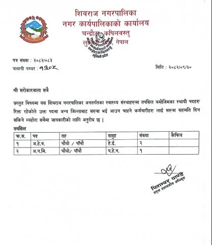 शिवराज नगरपािलकाले निम्न बमाेजिम स्वयंसेवक शिक्षकको बिज्ञापन प्रकाशन गरेकाे छ ।