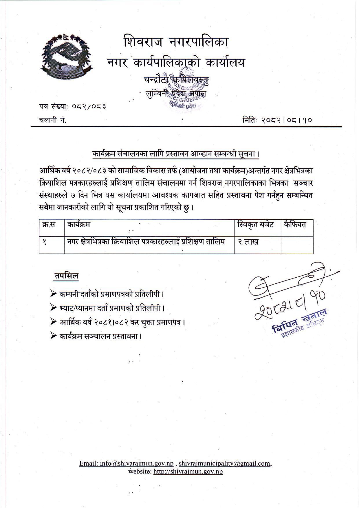 कार्यक्रम सञ्चालनका लागि प्रस्ताव आहवान सम्बन्धमा।