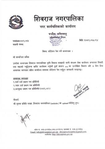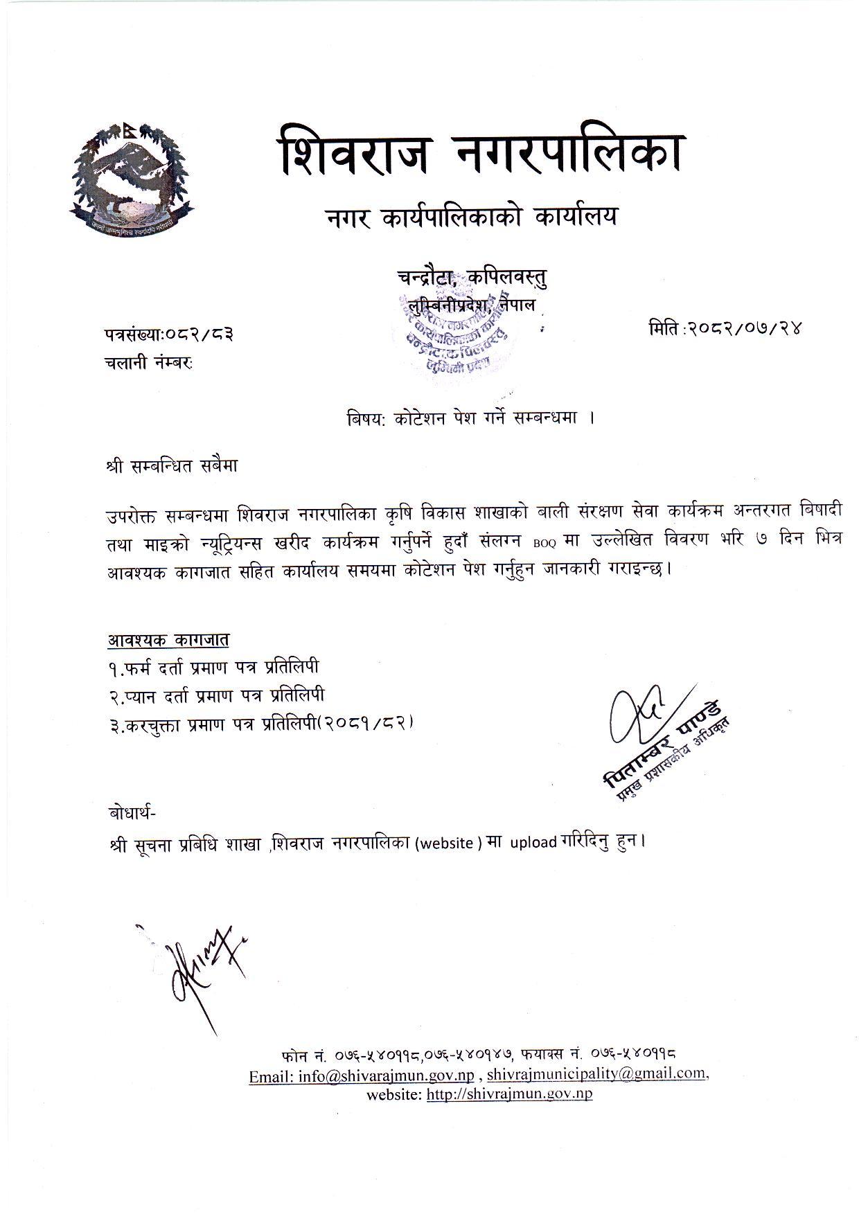 शिवराज नगरपालिका कृषि विकास शाखाकाे सूचना ! सूचना !! सूचना !!!
