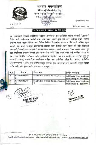 » ठेक्का किन नतोड्ने सम्बन्धी १५ दिने सूचना।