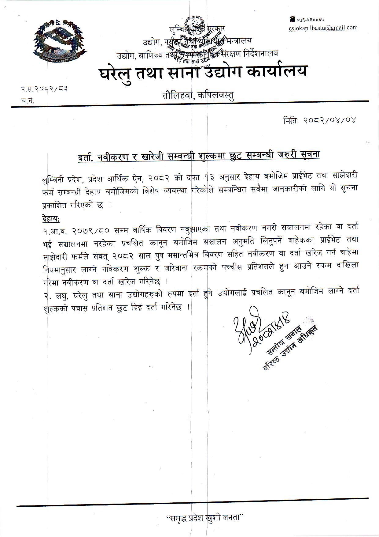 » दर्ता, नवीकरण र खारेजी सम्बन्धी शुल्कमा छुट सम्बन्धी जरूरी सूचना।