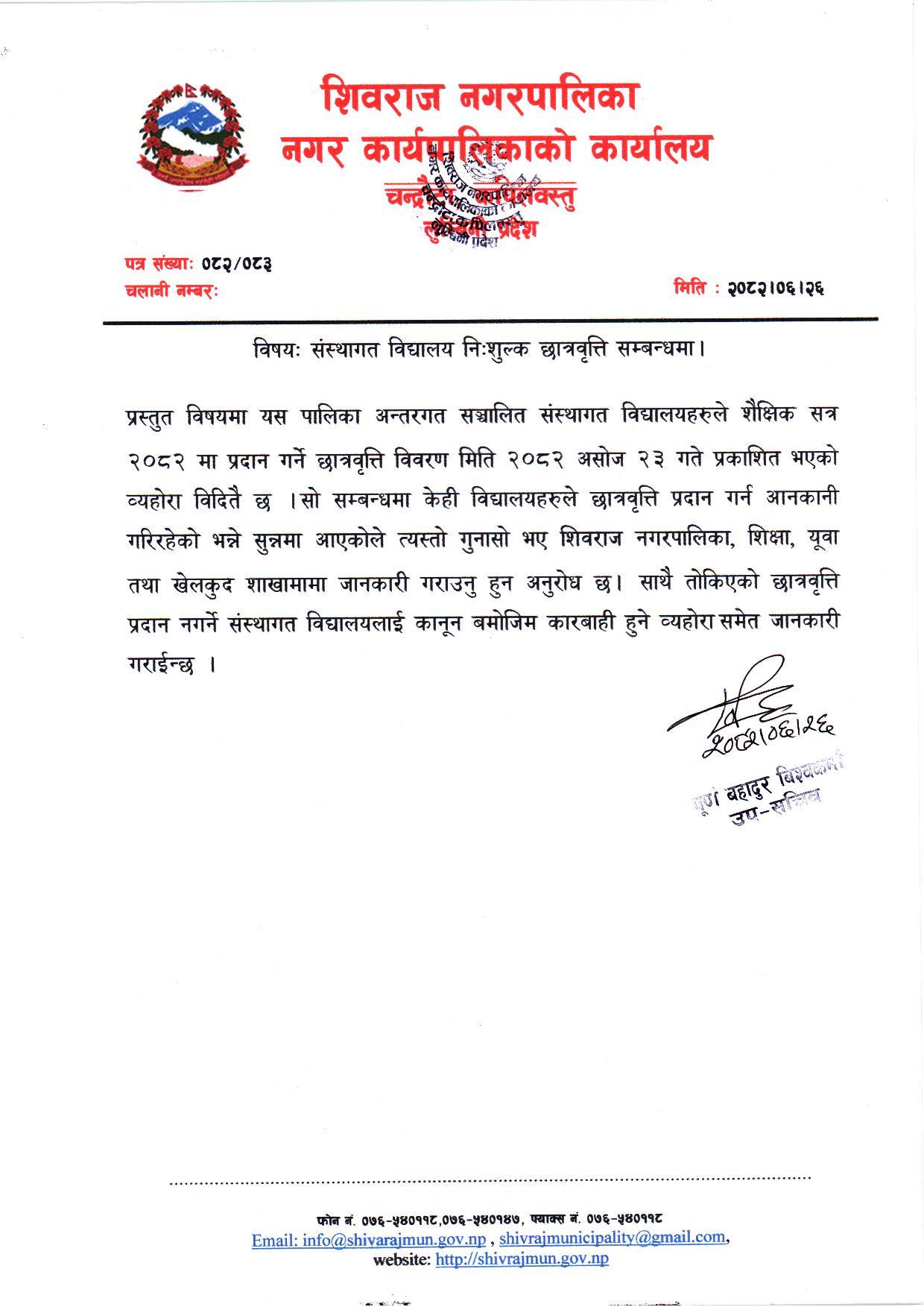 शिवराज नगरपालिका शिक्षा योजना २०८२