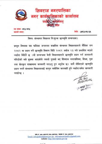 » संस्थागत विद्यालय निशूल्क छात्रवृत्ति सम्बन्धमा।