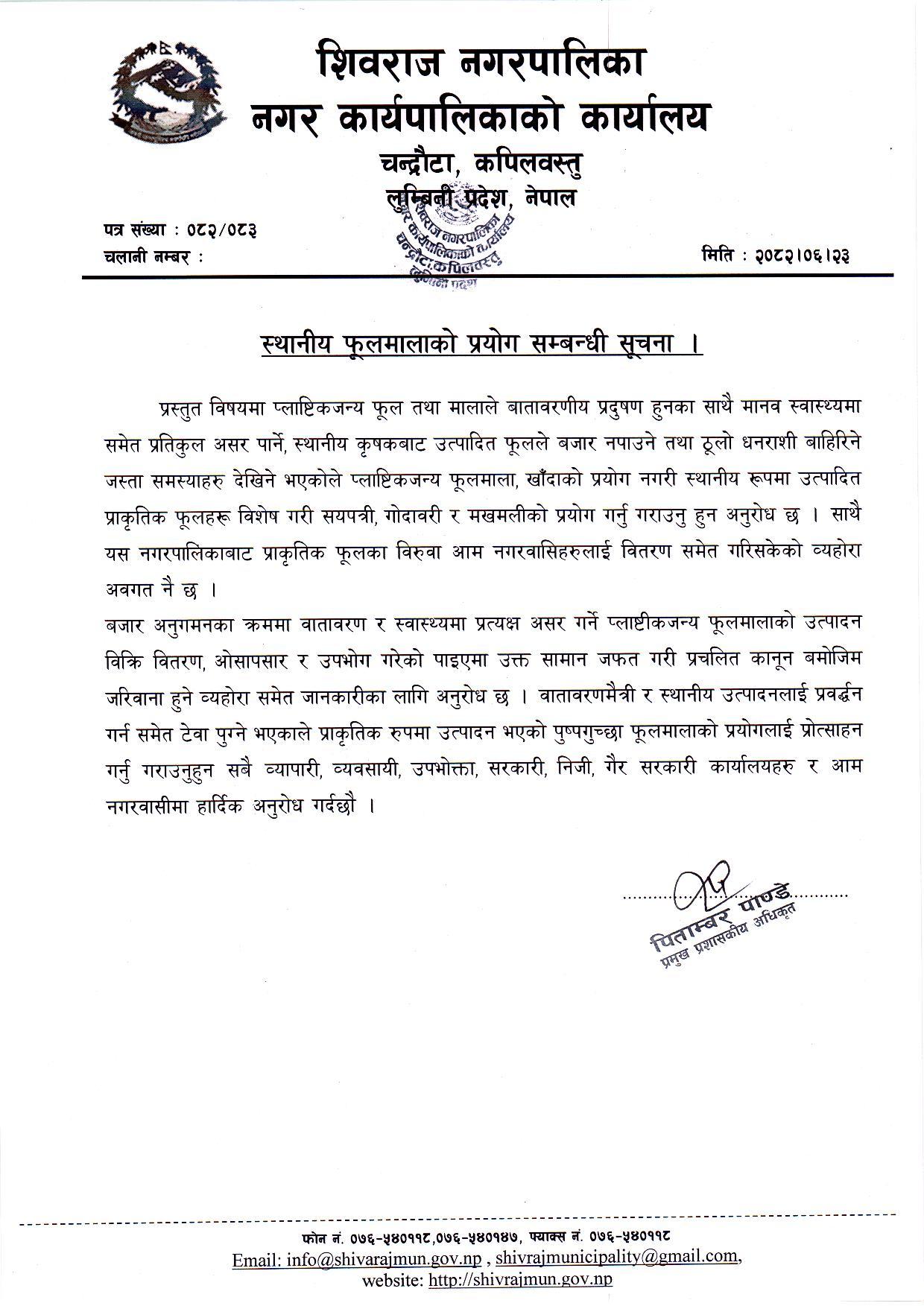 स्थानीय फूलमालाको प्रयोग सम्बन्धी सूचना।