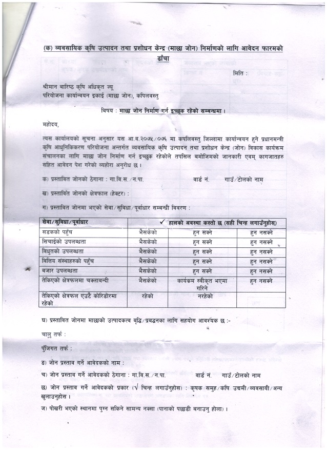 साना व्यवसायिक कृषि उत्पादन केन्द्र पकेट तथा व्यवसायिक कृषि उत्पादन केन्द्र ब्लक निर्माणको लागि प्रस्ताव आव्हान गरिएको सुचना ।