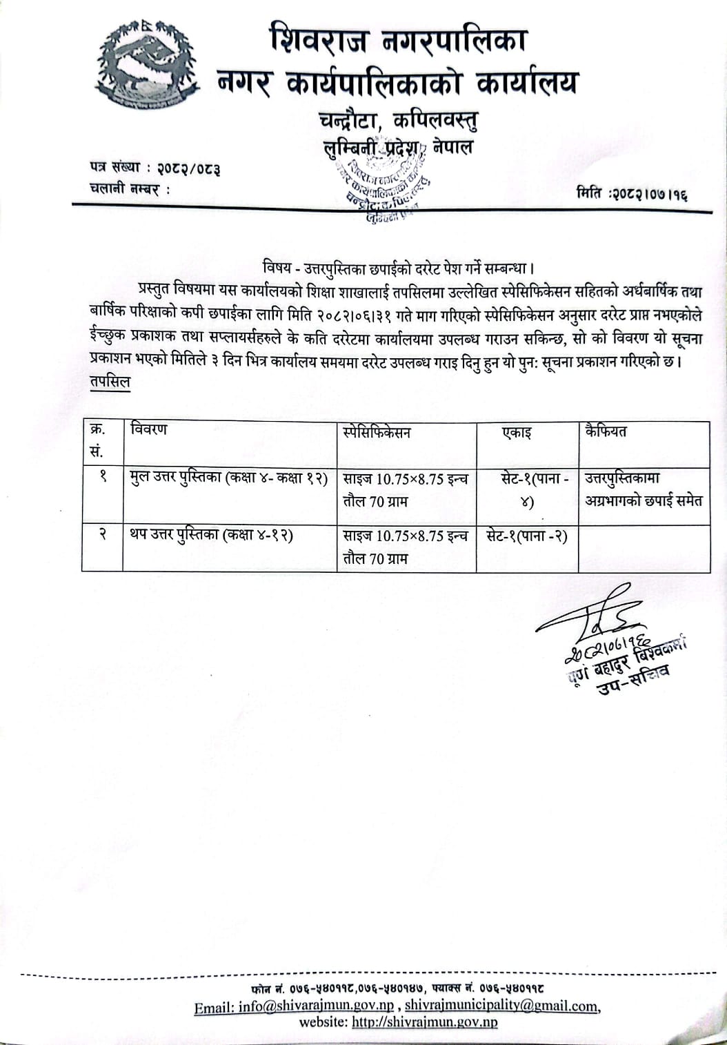 » उत्तरपुस्तिका छपाइको दररेट पेश गर्ने सम्बन्धमा