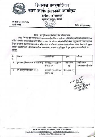 शिवराज नगरपािलकाले निम्न बमाेजिम स्वयंसेवक शिक्षकको बिज्ञापन प्रकाशन गरेकाे छ ।