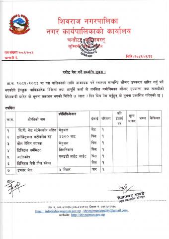 चन्द्रौटा बजार सरसफाई गर्ने कार्य तथा सरसफाई शुल्क संकलन सम्बन्धि शिलवन्दी दरभाउ सम्बन्धि सूचना ।