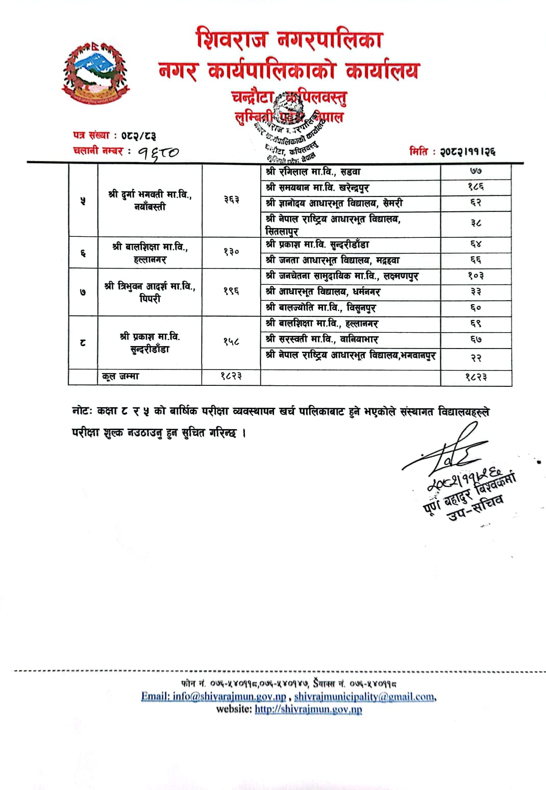 परिक्षा केन्द्र कायम गरिएको।