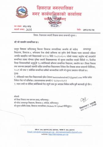 शिवराज नगरपािलकाले निम्न बमाेजिम स्वयंसेवक शिक्षकको बिज्ञापन प्रकाशन गरेकाे छ ।