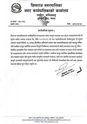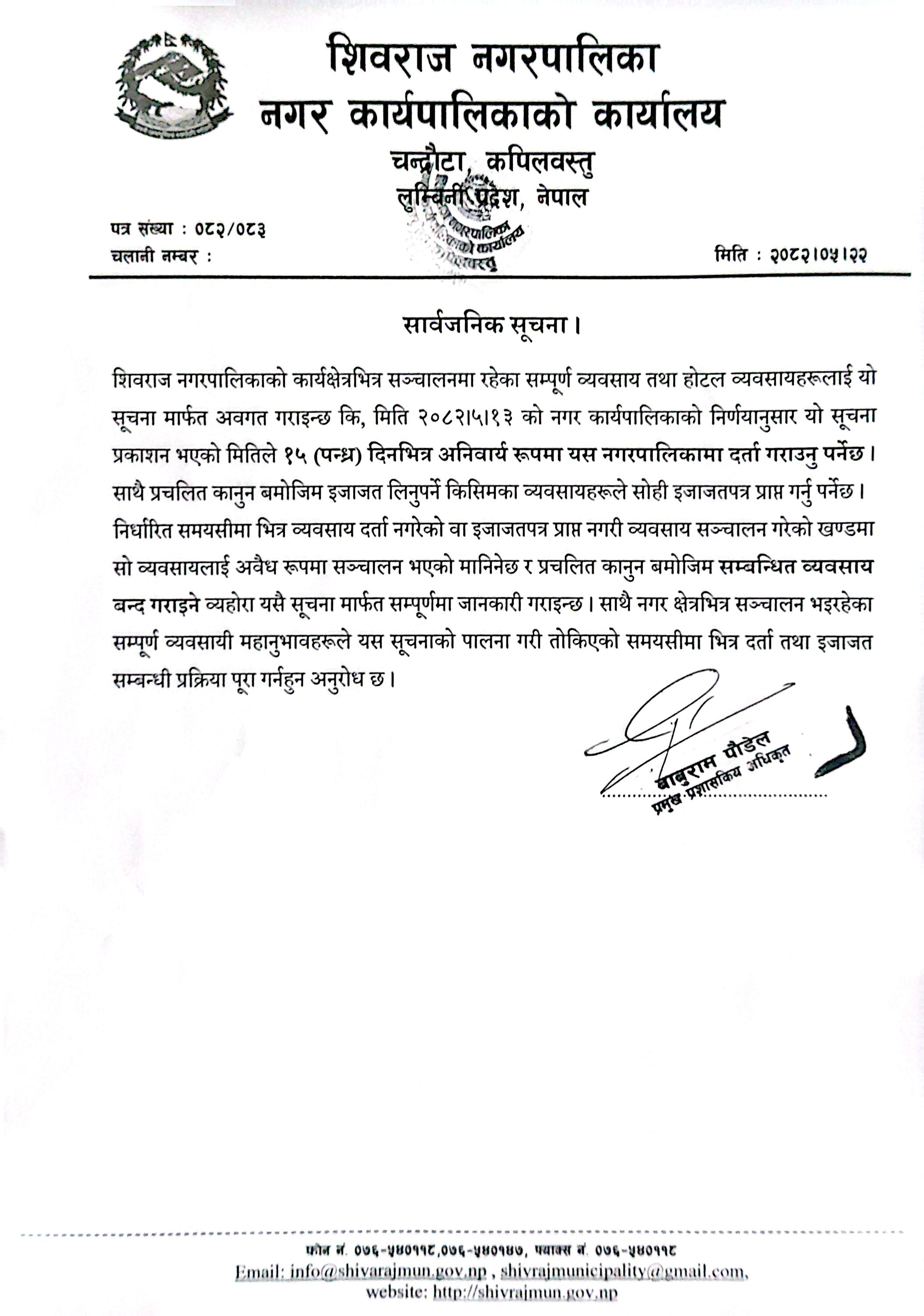 शिवराज नगरपालिकाको कार्यालयबाट नगरको सडक क्षेत्र व्यवस्थित गर्ने सम्बन्धि सूचना