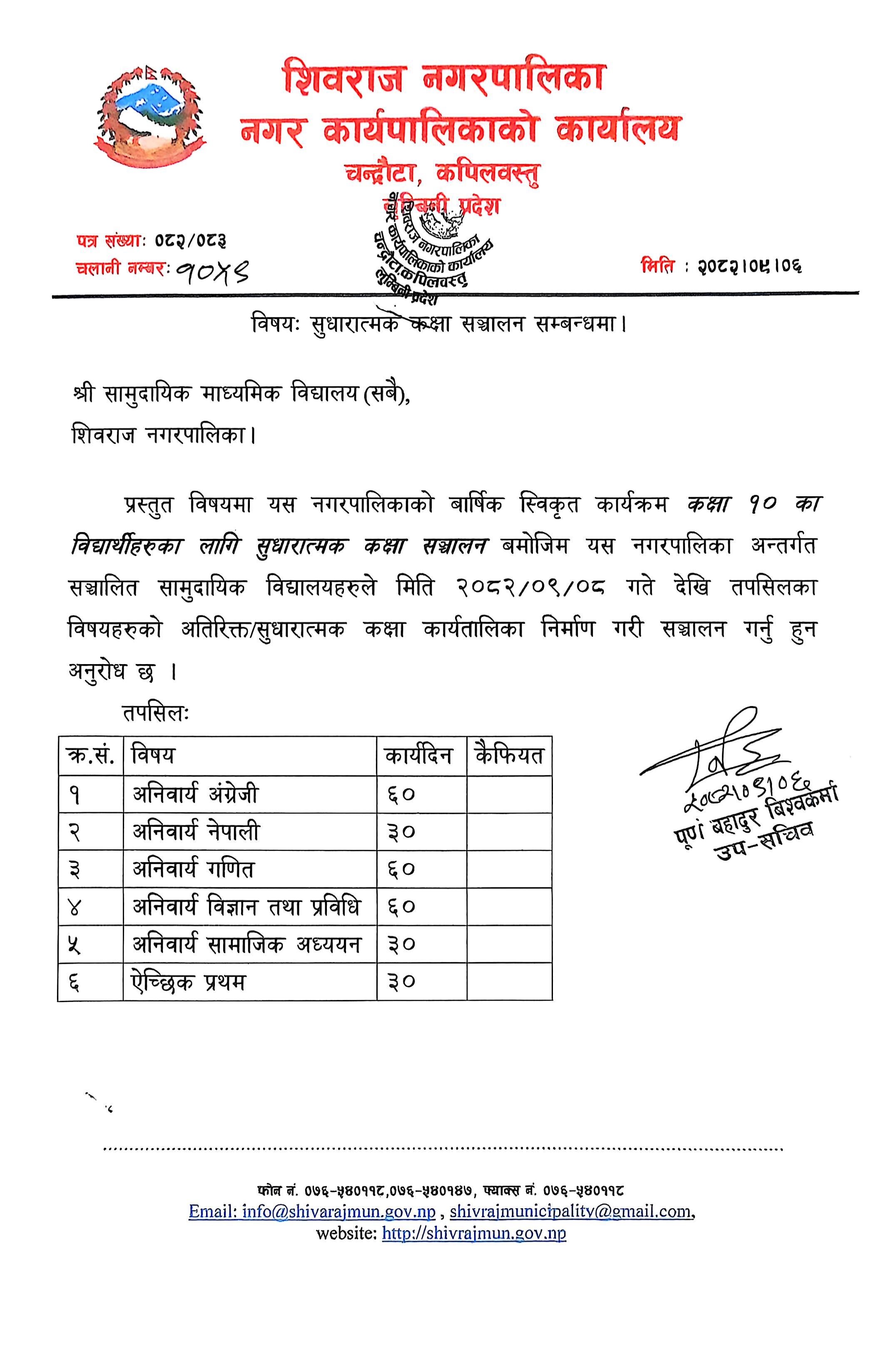 सुधारात्मक कक्षा सञ्चालन सम्बन्धमा